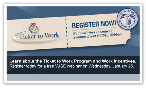 Subject: National Work Incentives Seminar Event (WISE) Webinar: Ticket to Work: Support Services for People Who Have a Disability and Are Ready to Work